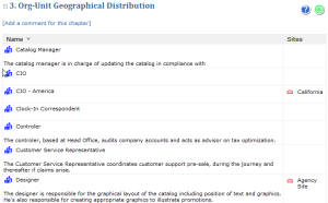 This report details the organizational structure, the responsibilities and the sites associated to the org-units specified as parameters.