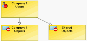 In the above example, certain persons of each company may need to have visibility on objects of their company and on shared objects, but should be able to modify only the objects of their own company.