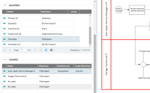 • In the Visio import wizard, select the shape corresponding to the participant, for example "Garage Technician".