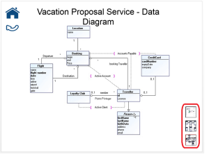 When an object is described by several diagrams of different types (of same level), an overview of diagrams is displayed on the bottom right hand side of the selected diagram page.