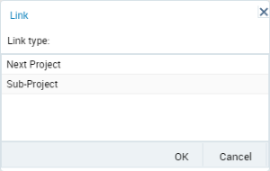 It offers a choice between a "Next Project" link which indicates a sequence between two projects, and a "Project Step" link which indicates splitting.