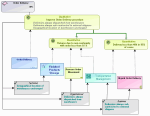 The objective of the Order Delivery project is to improve the order delivery procedure. This qualitative objective is too vague to be operational. So it is split into two sub-objectives that have the advantage of being quantifiable.