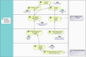 HOPEX provides a library (in file BSC.mol) that includes the four strategic perspectives proposed by the balanced scorecard. New perspectives can be created, for example "Regulatory" or "Environmental", according to requirements of the enterprise.