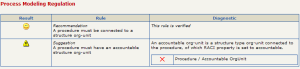 For example, if you activate the "Process Modeling Regulation" regulation, there is an automatic check on the business processes, organizational processes, activities, org-units, operations and conditions that you create and handle.