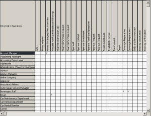 Take the example of the Org-Unit/Operations matrix, with org-units in rows and operations in columns.