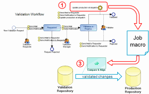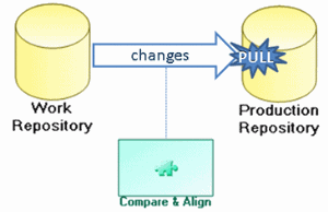 "Pull" mode requires connection to the production repository. Modifications are imported in a private workspace from the target repository.