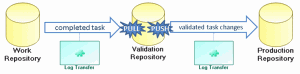 If transfer is under the responsibility of users working in the source repository, this mode can prove to be restrictive. In this context, users connected to the source repository must: