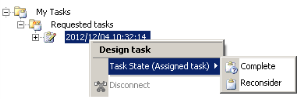 • several sub-menus presenting the list of workflow transitions that the user can trigger