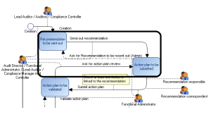 In the example below on the Recommendation workflow, if the recommendation is in status “Action Plan to be submitted” and the recommendation owner changes, the administrator can: