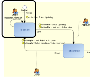 For example, in the "Top-Down Action Plan" workflow, a loop transition has been added on the "To be sent" state. In this way the action plan creator can easily reassign the action plan approver.