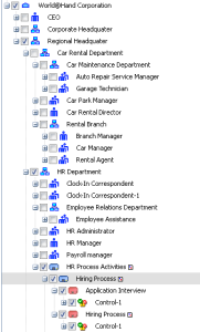 In the above example, if you select the "Manage Human Resources" process, all controls and context objects located at a lower level are selected, as well as all parent context objects up to the tree root.