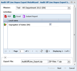 To execute the test in Offline mode, you must extract it from HOPEX Internal Control and import it in the Offline application.