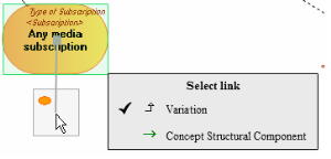 The pop-up menu of a Concept Structural Component link type for example presents: