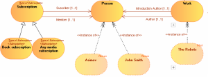 A business information area provides a partial view of ontological models for the business information. It is described by a concept diagram presenting concepts, their components, super-types and links.