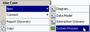 The diagram of a new system process opens. The system process associated with the use case is already positioned in the diagram.