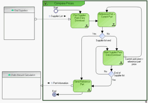 When the complete list of suppliers has been analyzed, information concerning the reference part is sent to the "Order Amount Calculation" service.