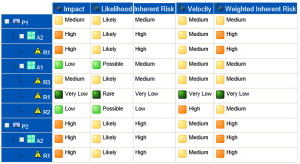 The inherent (or gross) risk indicates the risk to which the organization is exposed in the absence of measures taken to modify the occurrence likelihood or impact of this risk. This is the result of multiplying impact value and likelihood value before taking account of risk prevention or reduction measures.
