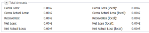 The Total Amounts section of the incident properties automatically calculates the sum of all incident-linked financial elements (losses, gains, recoveries and provisions).