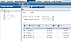 A calendar is made up of calendar periods: a calendar period can for example correspond to a quarterly period. It can be useful to divide calendars into calendar periods to plan audits.