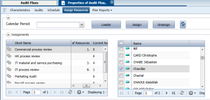 1. From the Assign Resources page, in the frame at top left, select the desired audit.