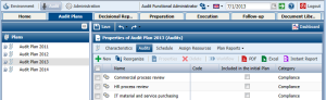 • Preparation: tab on preparation of the audit from which the Administrator or Audit Director can create audit plans and audits and define calendars.
