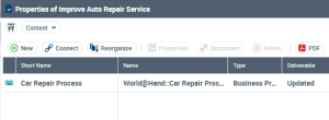 To specify the deliverables provided by a project, you must attach these to the project in the Content tab of the project properties dialog box. You can specify if a deliverable is produced, used or modified.