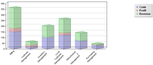 The example below shows costs, benefits and revenues distribution for the different business applications.
