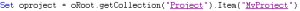 Set myproject= oRoot.getCollection("~qekPESs3iG30[Project]").Item("~7qv3W01mCz10[MyProject]")