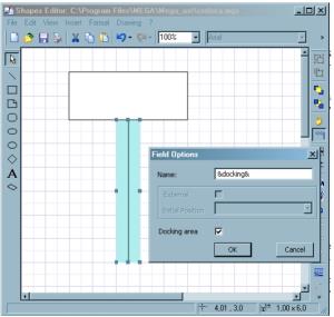 To define a custom docking area, draw a basic graphic object and check the appropriate option in the “field options” dialog box.