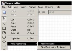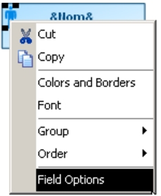 In order to be referenced at programming, each shape object must first be identified by a name. This naming can be via the "Field Options" command in the pop-up menu of each object. The name should be prefixed and suffixed by "&".