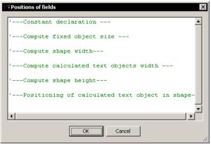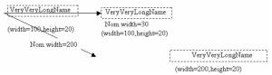 • Fix the final width of the shape as a function of the width of fixed size objects, calculated fields and the width required for the shape (shape width before code application, see example below). (NB1)