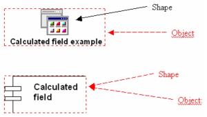 • "Shape" object: Rectangle containing graphical elements of the shape except for calculated fields.