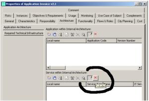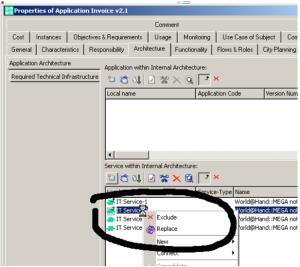 The Service concept is substitutable, there is an additional button in the listview of the application property page. The red cross allows to show/hide excluded services.