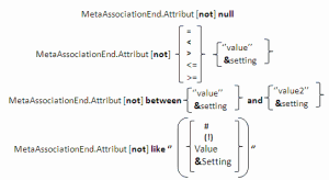 • Null means that the link does not exist. If several MetaAssociationEnds are concatenated, it is the link reached by the last MetaAssociationEnd that is tested.