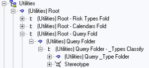 In the Utilities navigation window, queries are classified by the value of their "Stereotype" attribute value only.