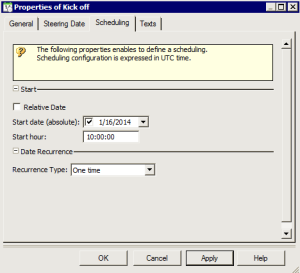 For detailed information regarding the date configuration (e.g.: reference date, absolute date, date recurrence) see HOPEX Studio - 2 - HOPEX Scheduler guide.