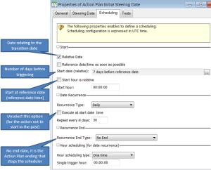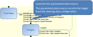 2. The parameterization macro records the trigger from the Steering date configuration (Scheduling tab).