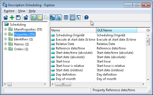 The properties of the Scheduling MegaObject available via the Scheduler client API can be listed in the HOPEX Explorer as following: