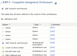 The Complete Integrated Dictionary chapter is based on the same principle as the Integrated Dictionary report, however, items without comments are not removed from the list. This chapter is used on the HOPEX Modeling desktop as a working tool to develop the architecture. The goal is to help the architecture designer retrieve the items for which comments are to be added.