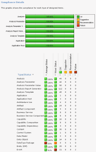 The next section details the level of compliance for the different types of architecture objects.