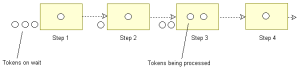 The BPMN model of a process represents an organized series of steps. At simulation, tokens traverse a sequence flow, respecting specified time constraints. They therefore simulate the time required for execution of a step before passing to the next step.