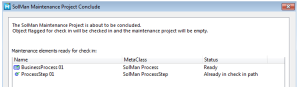 After you have modified an object in the project, you need to specify it is ready for check-in in order to link it to the maintenance project.