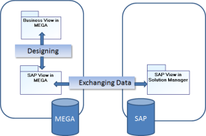 • A metamodel in HOPEX, called the SolMan metamodel that is used to describe SolMan projects. This metamodel is linked to the MEGA Process metamodel in order to match Business modeling data with SAP Solution Manager data.