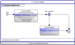 The exchange contract diagram associated with the customer identification exchange contract describes, in BPMN formalism, the operations executed.