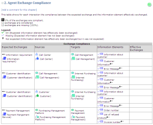 For each agent, this report lists the interactions received, of which the exchange contract is described by messages.
