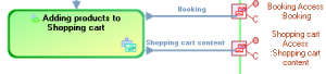 In the example, request points represent requests for service executed by the "Adding Products to Shopping Cart" logical application to issue an order or book products.