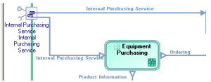 In the example presented here, the internal purchasing service is linked to two interactions based on the same exchange contract, representing the activation of the equipment purchasing application or the office supplies purchasing application.