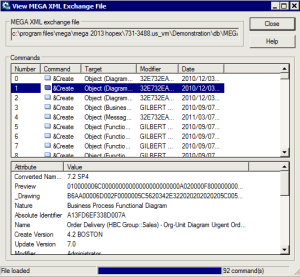 • an export in MEGA XML format, the view MEGA XML exchange file dialog box appears.