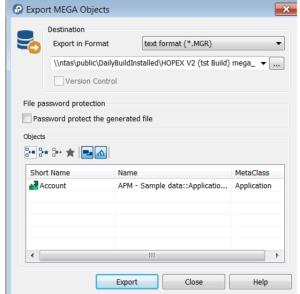 You can export objects from HOPEX Administration or from your HOPEX desktop.