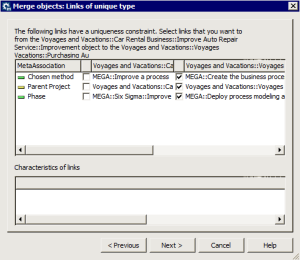 This step appears only if the objects to be merged have unique links connecting them to different objects.
